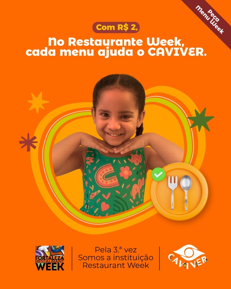 Quem conferir o menu week, será incentivado a contribuir com R$ 2,00 por menu consumido, destinados ao CAVIVER. Organização da Sociedade Civil destinada a diagnosticar, tratar e reabilitar crianças socialmente desfavorecidas, que apresentam baixa visão ou risco de cegueira.
